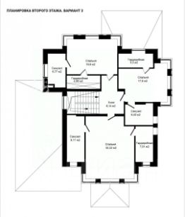 Первый этаж: прихожая, гардеробная, кабинет, гостиная, терраса, кухня-столовая, котельная, кладовая, санузел;