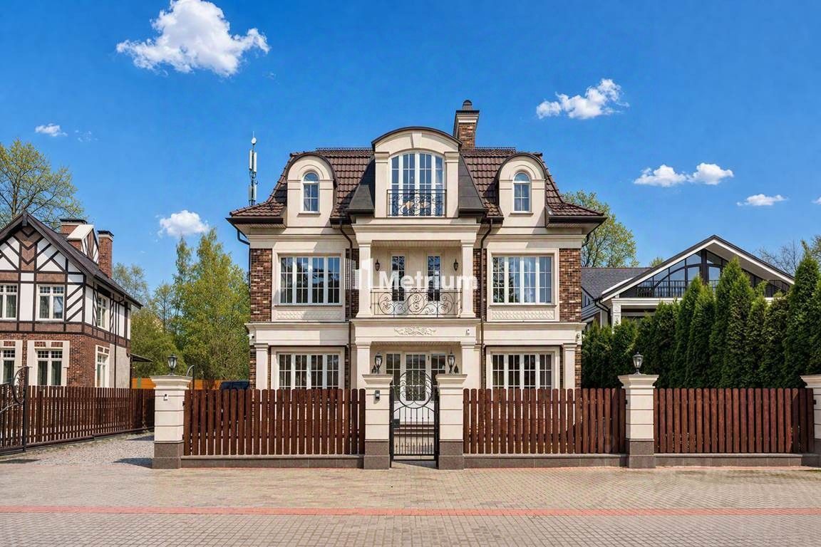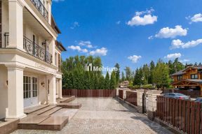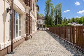 Внешне дом отделан натуральным камнем, медью, клинкерным кирпичом ручной формовки. На крыше застелена черепица Braas. Установлены роскошные дубовые окна.