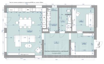 • Просторная кухня-гостиная с панорамными окнами с выходом на террасу и участок с ладшафтным дизайном