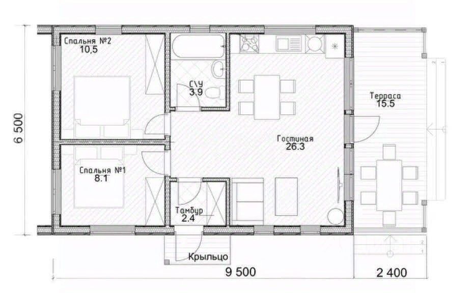 Вашему вниманию предлагается полноценный загородный дом с двумя спальнями, предназначенный для круглогодичного комфортного проживания на природе семьи из 2-4 человек.