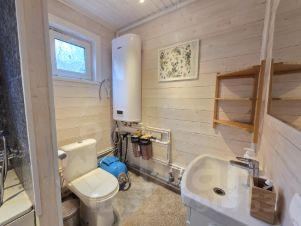 Уютная дача в поселке среди леса. Дом 100 кв.м. и еще один домик 20 кв.м. на участке 6 сот. Строения расположены таким образом, что остается еще много свободного пространства: для стоянки автомобиля, сада, газона или огорода. Дом теплый, стены бревно-кругляк плюс утепление, на монолитном ленточном фундаменте. На первом этаже: застекленная веранда, гостиная 18 кв.м., две комнаты, кухня-столовая, санузел с ванной. На втором этаже холл и 2 комнаты по 16 кв.м. В доме установлен камин для отопления.