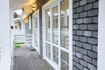 - Сердце дома — кухня-гостиная 44,3 м²: здесь легко разместится большой диван для киновечеров и стол для шумных праздников. Панорамные окна наполняют пространство светом, а выход на террасу 27 м² стирает грань между уютом интерьера и красотой природы.