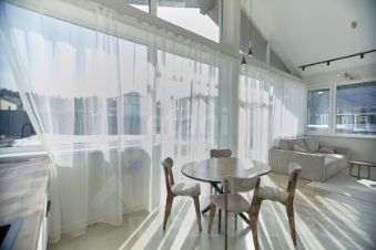 Сам дом возведен из современных материалов: несущие стены выполнены из газобетона, что гарантирует высокую энергоэффективность, прочность конструкции и оптимальный микроклимат внутри помещений.