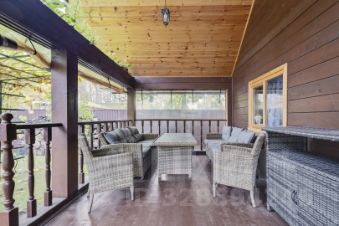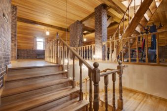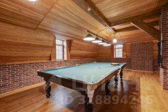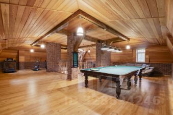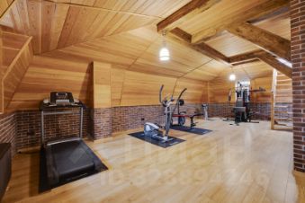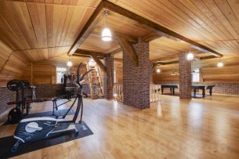 Третий этаж 129 м2 отведен под бильярдную и спортзал. По желанию нового владельца этаж можно переоборудовать под жилую зону. В отделке использовалась лиственница и дуб.