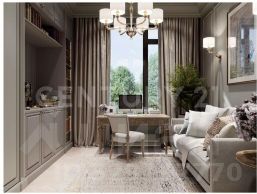 Три спальни, гардеробная, кабинет, кухня-гостиная, три санузла.