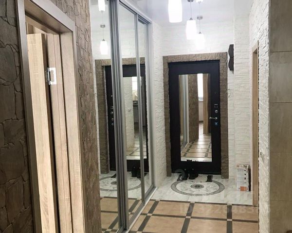 В прихожей встроенный вместительный шкаф- купе с зеркалами, обувница,