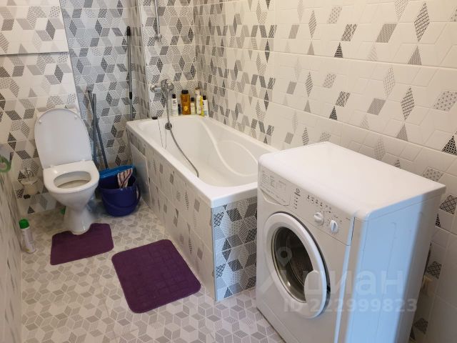 Санузел совмещенный, полы с подогревом, множество мест для хранения, стиральная машина.