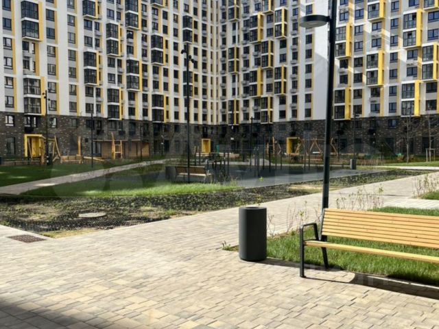 Лесная территория поселка с 6-этажными домами, благоустроенными детскими и спортивными площадками, скверами и зонами отдыха.