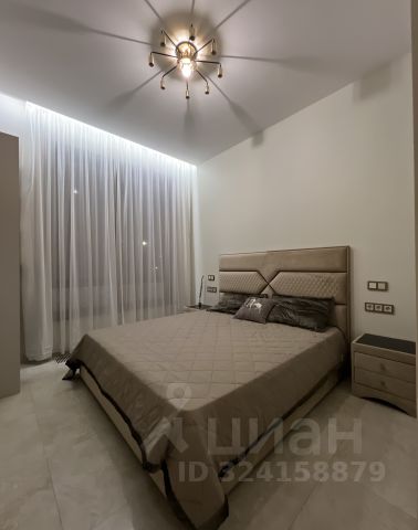 Внутри квартиры: Квартира 60 кв.м. укомплектована необходимой мебелью и бытовой техникой. В спальне; 2х спальная кровать, стол, тумба, шкаф. Гостиная-кухня оснащена всем необходимым: кухонный гарнитур, 2-х камерный холодильник, плита, обеденная зона, угловой диван, стенка, барная стойка. Санузел просторный- совмещён, стиральная машинка.