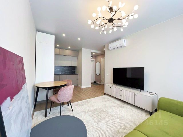 Теплая, светлая евродвушка со всей необходимой мебелью и техникой. В гостиной и в спальне установлены современные кондиционеры. Вся мебель встроенная, с продуманной системой хранения до потолка. Есть большой шкаф для одежды, шкаф и комод в ванной, а также целая гардеробная\кладовая в которой можно разместить верхнюю одежду, обувь, чемоданы, пылесос, елку и другие крупногабаритные вещи.