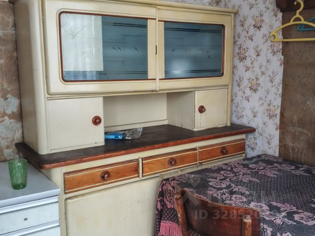 В доме две комнаты - одна комната наверху, одна внизу, кухня и застекленная веранда. Мебель в доме на первом этаже (наверху комната пустая, при необходимости можно перенести нужную мебель): 3 кровати - две двуспальные и одна односпальная (из них - одна двухспальная кровать находится на веранде), два шкафа, кухонная мебель, стол обеденный, холодильник, двухконфорочная электрическая плита, микроволновка, набор посуды,тепловой электрообогреватель, телевизор, стиральная машина, дачная мебель (пластиковые стулья, стол, зонт от солнца). Электричество есть, газа нет, колодец на участке, санузел в доме, горячая вода в доме. (два отдельных помещения - туалет и душ, водонагреватель).