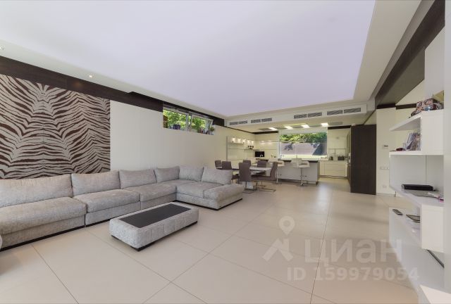 1 этаж 517 кв.м.: 2 спальни со своими с/у, гостевой с/у, гостиная со вторым светом, каминная, столовая, кухня, зимний сад, бассейн 14 метров с противотоком и гидромассажем, комнатой отдыха, сауной, хаммамом, 2 душевыми и с/у. Терраса 28 кв.м, балкон 8,6 кв.м;