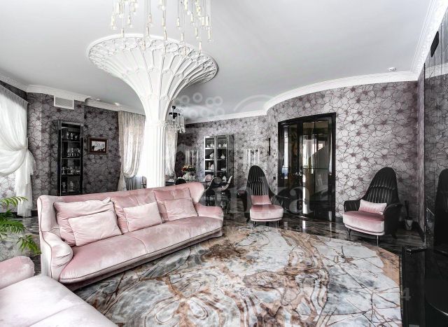 1 этаж 517 кв.м.: 2 спальни со своими с/у, гостевой с/у, гостиная со вторым светом, каминная, столовая, кухня, зимний сад, бассейн 14 метров с противотоком и гидромассажем, комнатой отдыха, сауной, хаммамом, 2 душевыми и с/у. Терраса 28 кв.м, балкон 8,6 кв.м;