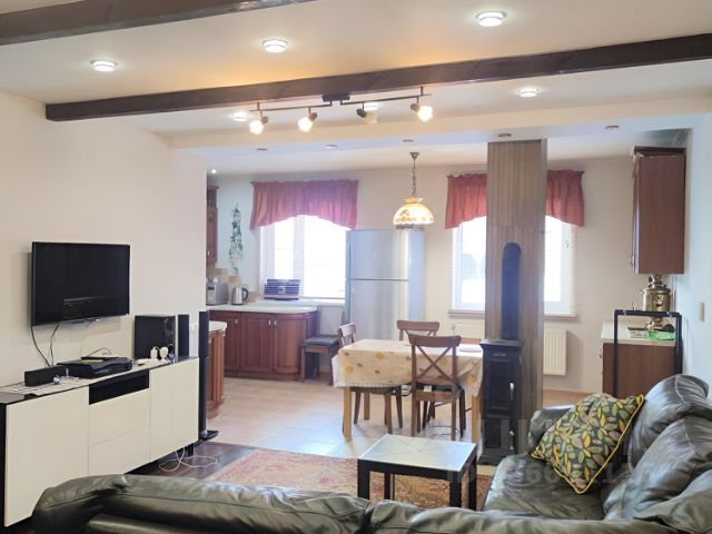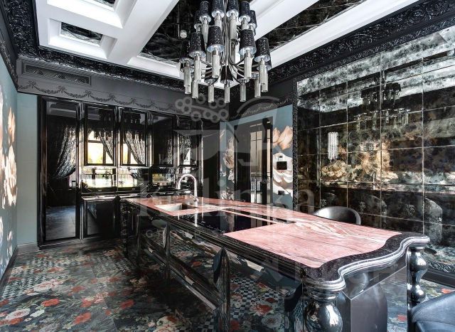 Кухня со встроенной техникой (2 холодильника Liebher, газовая плита Smeg, духовой шкаф Smeg, вытяжка). Полностью смонтирована система освещения- люстры, бра, точечная и светодиодная.