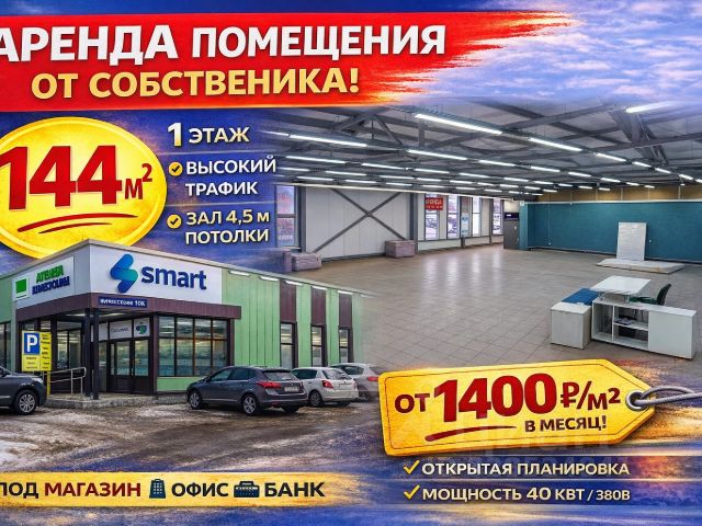 Аренда помещения 144 м² от собственника — 1 этаж, высокий трафик, парковка