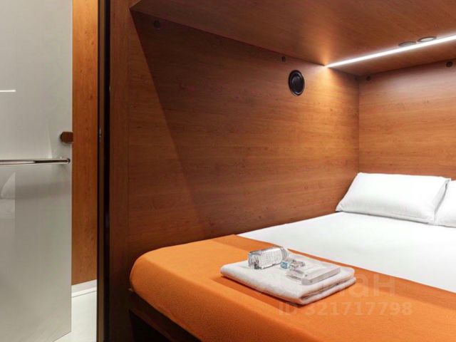 В двухместном номере с мансардным или обычным окном имеются: одна двуспальная или две односпальных кровати, прикроватные светильники на прикроватных тумбочках, письменный стол, стулья, большой шкаф для одежды, зеркало в полный рост, настенная панель для верхней одежды, напольная тумба, вентилятор, телевизо