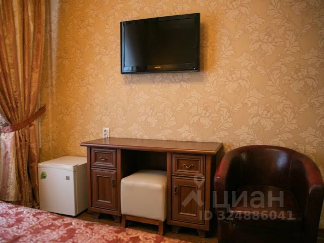 В двухместном небольшом номере, который находится в отдельно стоящем доме в стиле "Русская изба", имеются: 1 двуспальная кровать, прикроватные тумбочки, прикроватные светильники-бра, телевизор, шкаф для одежды или стеновая панель для одежды с напольной тумбой, вентилятор, постельное белье, полотенца, тапоч