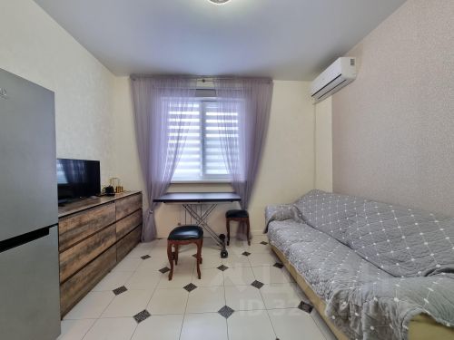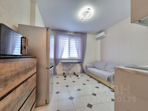 студия с отделкой в современном стиле со всей мебелью и бытовой техникой.