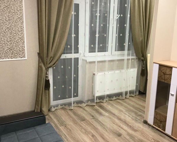 Здравствуйте! Сдам студию с дизайнерским ремонтом на 4-ом этаже в ЖК Планерный. Большое панорамное остекление от пола до потолка, широкий раздвижной энергоэффективный остеклённый портал между утеплённой лоджией и жилой комнатой (лоджию можно использовать как кабинет летом).