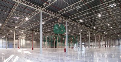 Высота потолков - 10 метров., пол -антипыль с допустимой нагрузкой более 6000кг/м2